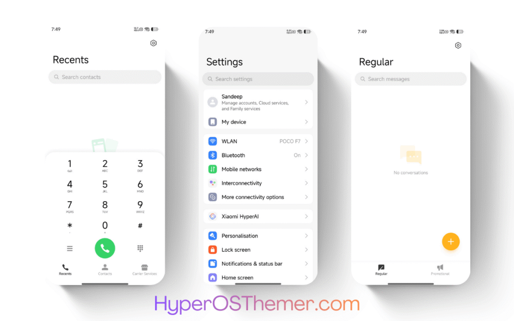 The Aero Glass HyperOS Theme follows Xiaomi’s HyperOS design philosophy, ensuring consistency across system apps such as Settings, Security, Dialer, and System UI.