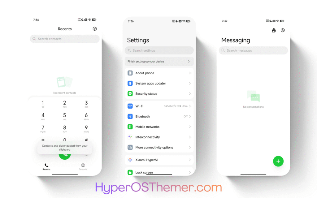 The Bxnder HyperOS Theme follows Xiaomi’s HyperOS design philosophy, ensuring consistency across system apps such as Settings, Security, Dialer, and System UI.