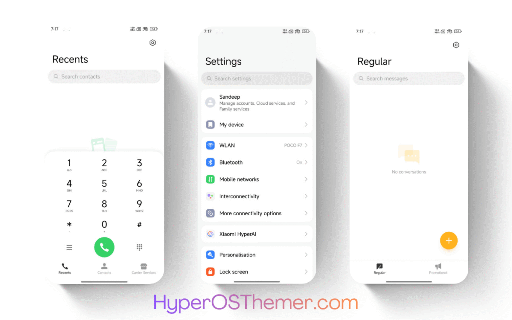 The Calm HyperOS Theme follows Xiaomi’s HyperOS design philosophy, ensuring consistency across system apps such as Settings, Security, Dialer, and System UI.