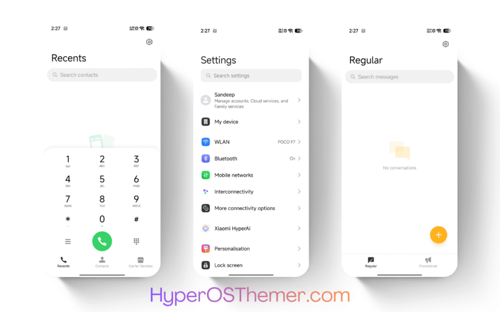 The DwBlinOS3 HyperOS Theme follows Xiaomi’s HyperOS design philosophy, ensuring consistency across system apps such as Settings, Security, Dialer, and System UI.