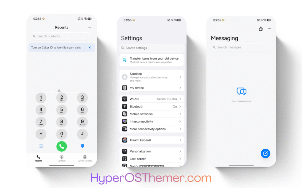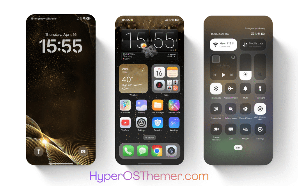 The Golden Dust for3 HyperOS Theme follows Xiaomi’s official HyperOS design philosophy. It ensures that the visual language remains consistent across all core system components.