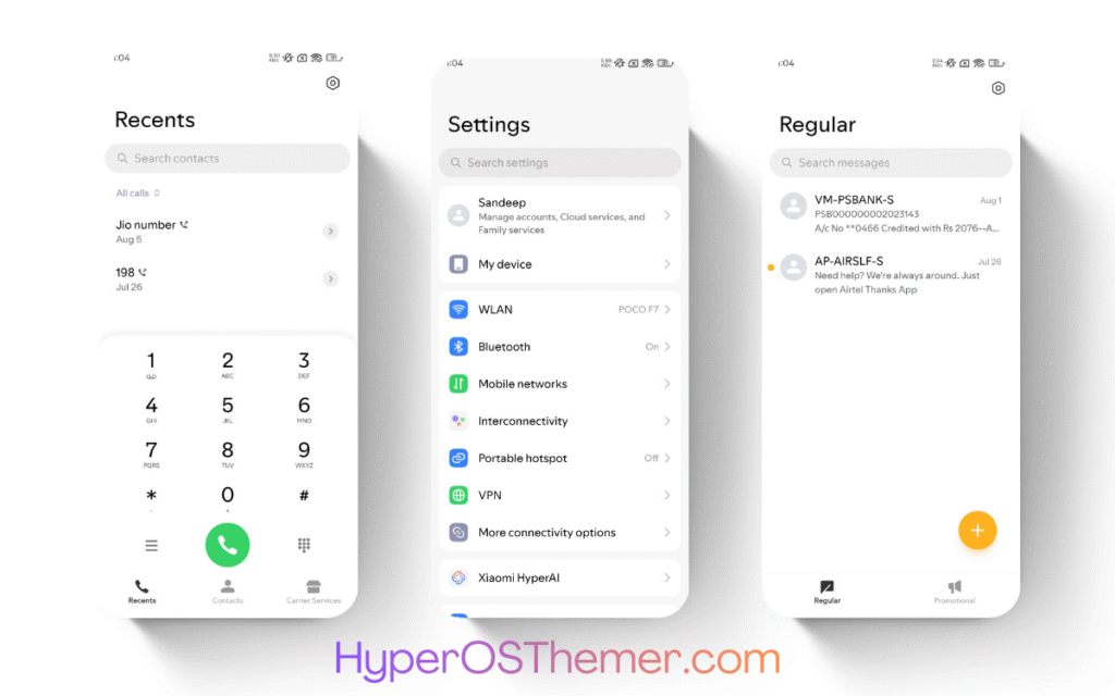 The MN UI HY HyperOS Theme follows Xiaomi’s HyperOS design philosophy, ensuring consistency across system apps such as Settings, Security, Dialer, and System UI.