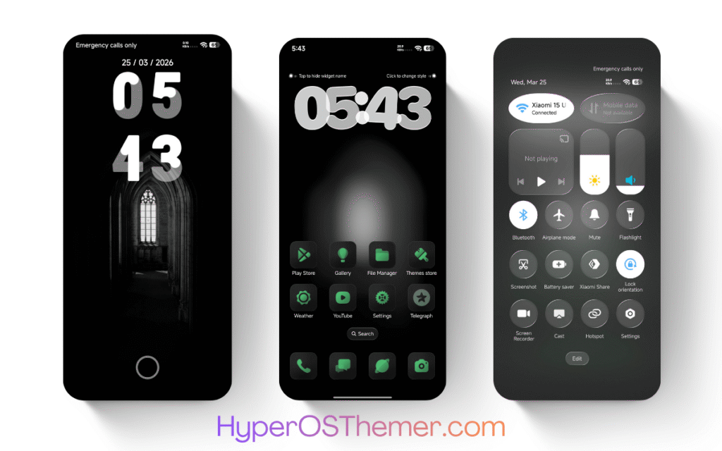 If you are looking for a great HyperOS 2 and HyperOS 3 Theme then OX EMG HyperOS Theme is a modern and well-optimized customization package designed specifically for Xiaomi phones running the latest HyperOS versions. It focuses on delivering a clean, minimal, and consistent user interface while maintaining system stability and performance and has various customizations.