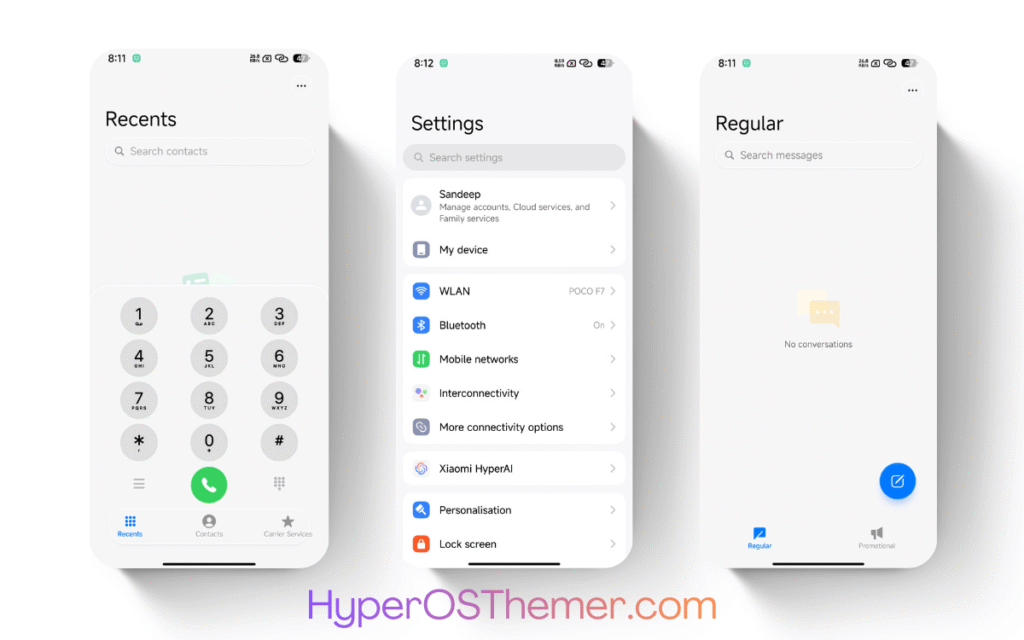 The ProjectX HyperOS Theme follows Xiaomi’s HyperOS design philosophy, ensuring consistency across system apps such as Settings, Security, Dialer, and System UI.