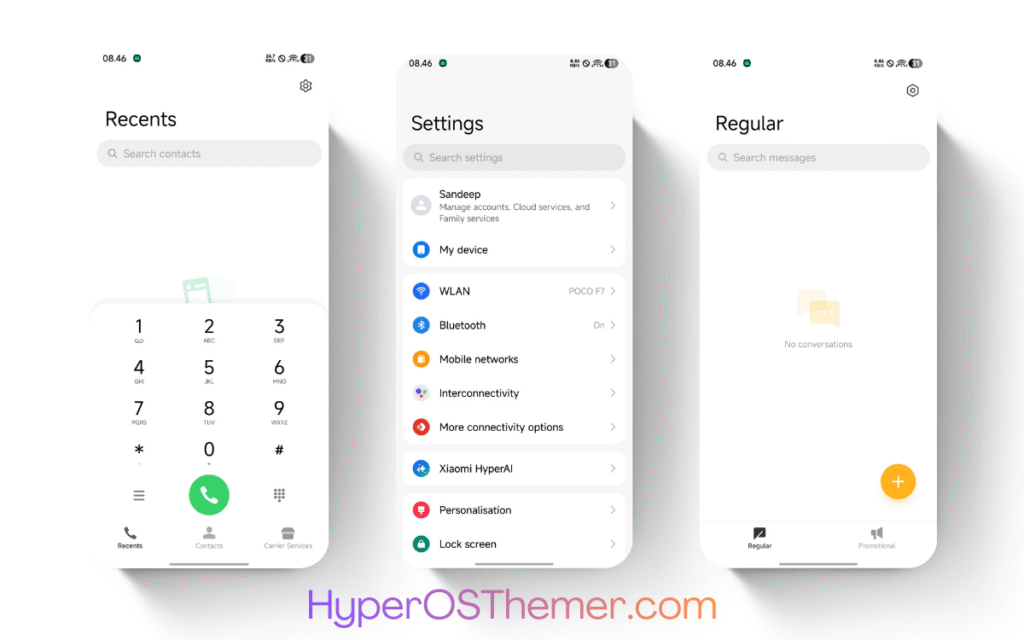 The UiUno HyperOS Theme follows Xiaomi’s HyperOS design philosophy, ensuring consistency across system apps such as Settings, Security, Dialer, and System UI.