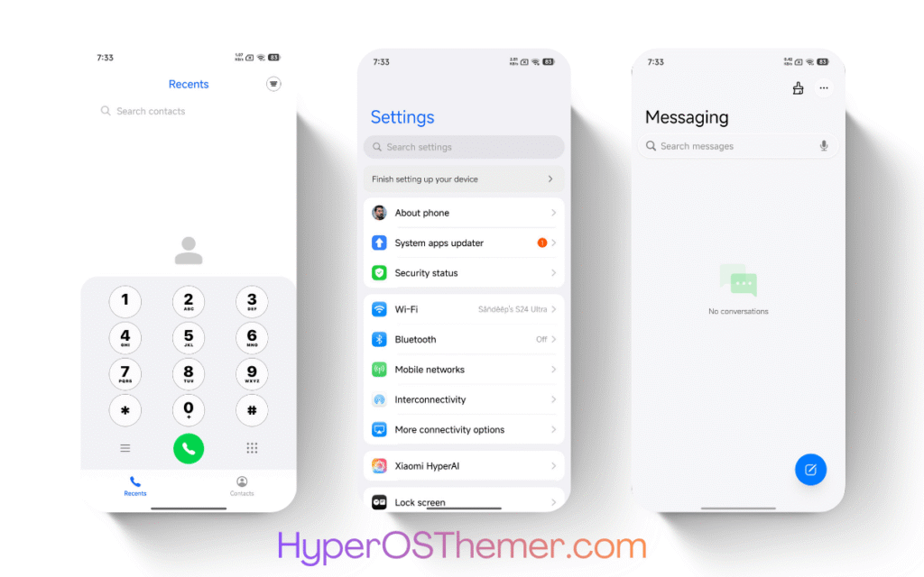 The VibrantV HyperOS Theme follows Xiaomi’s HyperOS design philosophy, ensuring consistency across system apps such as Settings, Security, Dialer, and System UI.