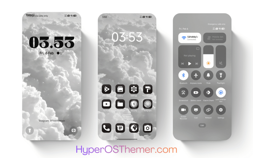 If you are looking for a great HyperOS 2 and HyperOS 3 Theme then White Clouds HyperOS Theme is a modern and well-optimized customization package designed specifically for Xiaomi phones running the latest HyperOS versions. It focuses on delivering a clean, minimal, and consistent user interface while maintaining system stability and performance and has various customizations.