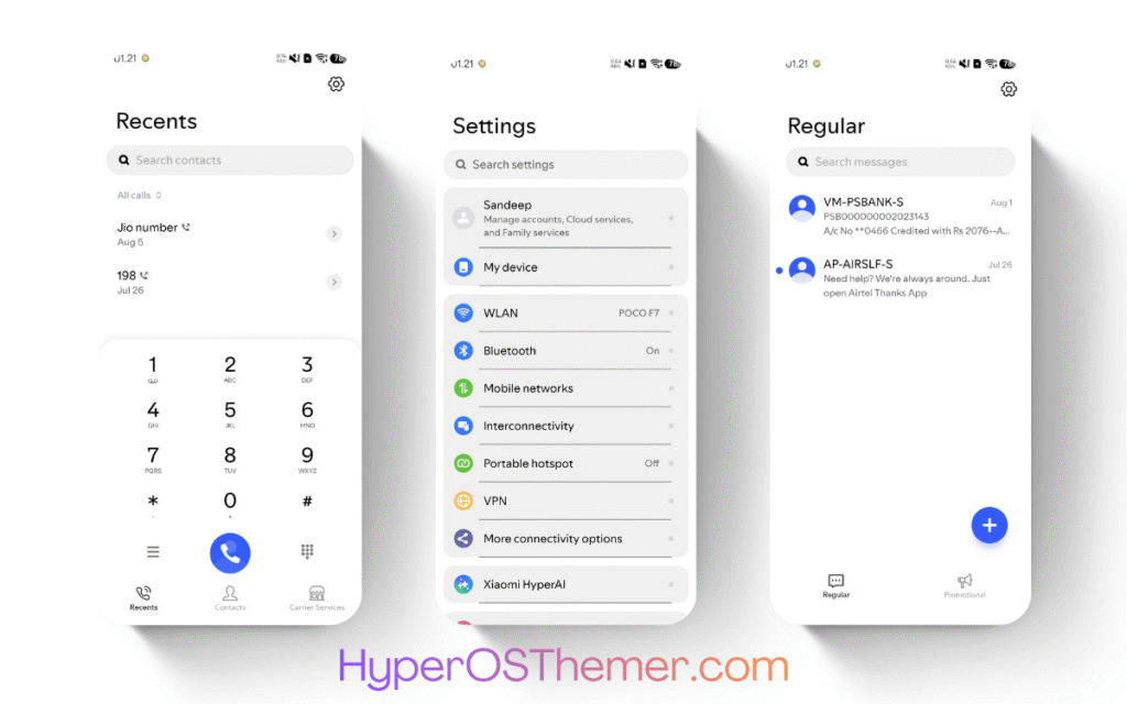 The Whitedust HyperOS Theme follows Xiaomi’s official HyperOS design philosophy. It ensures that the visual language remains consistent across all core system components.